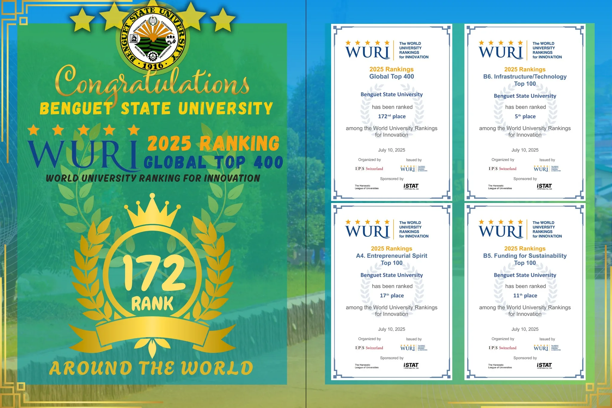 Benguet State University was honored with a commendation for its international recognition for securing a place in the World University Ranking for Innovation (WURI) and in the 801–1000 bracket of the Times Higher Education (THE) Impact Rankings. This honor affirms BSU’s unwavering commitment to global competitiveness, bringing pride not only to the university but also to the Cordillera region.