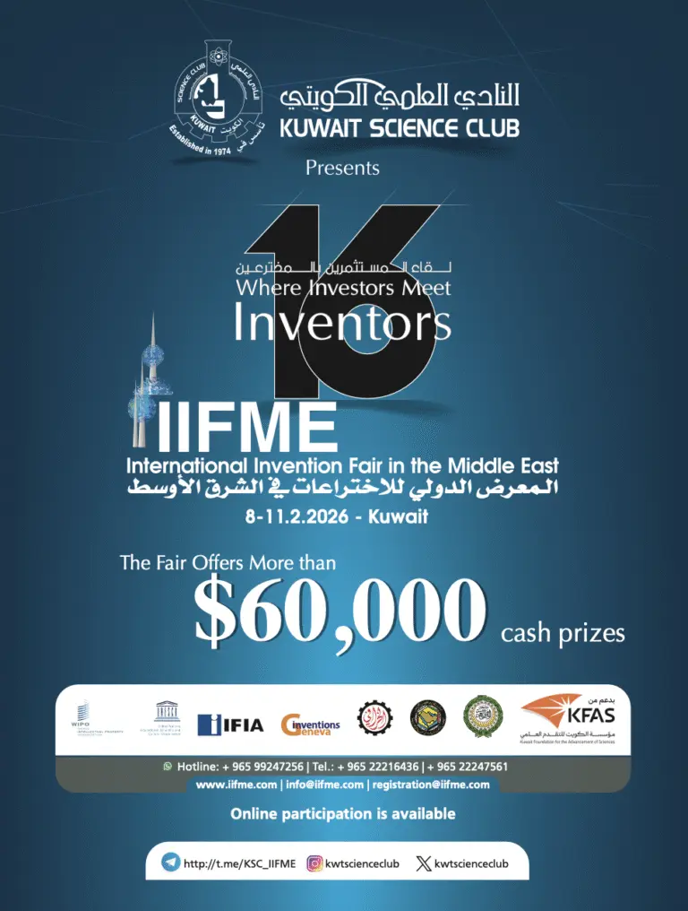 Organized by the Kuwait Science Club in partnership with the International Exhibition of Inventions of Geneva, the Fair brings together inventors and investors from around the world to showcase groundbreaking ideas in Mechanics, Computer Sciences, Agriculture, Environmental Protection, and more.