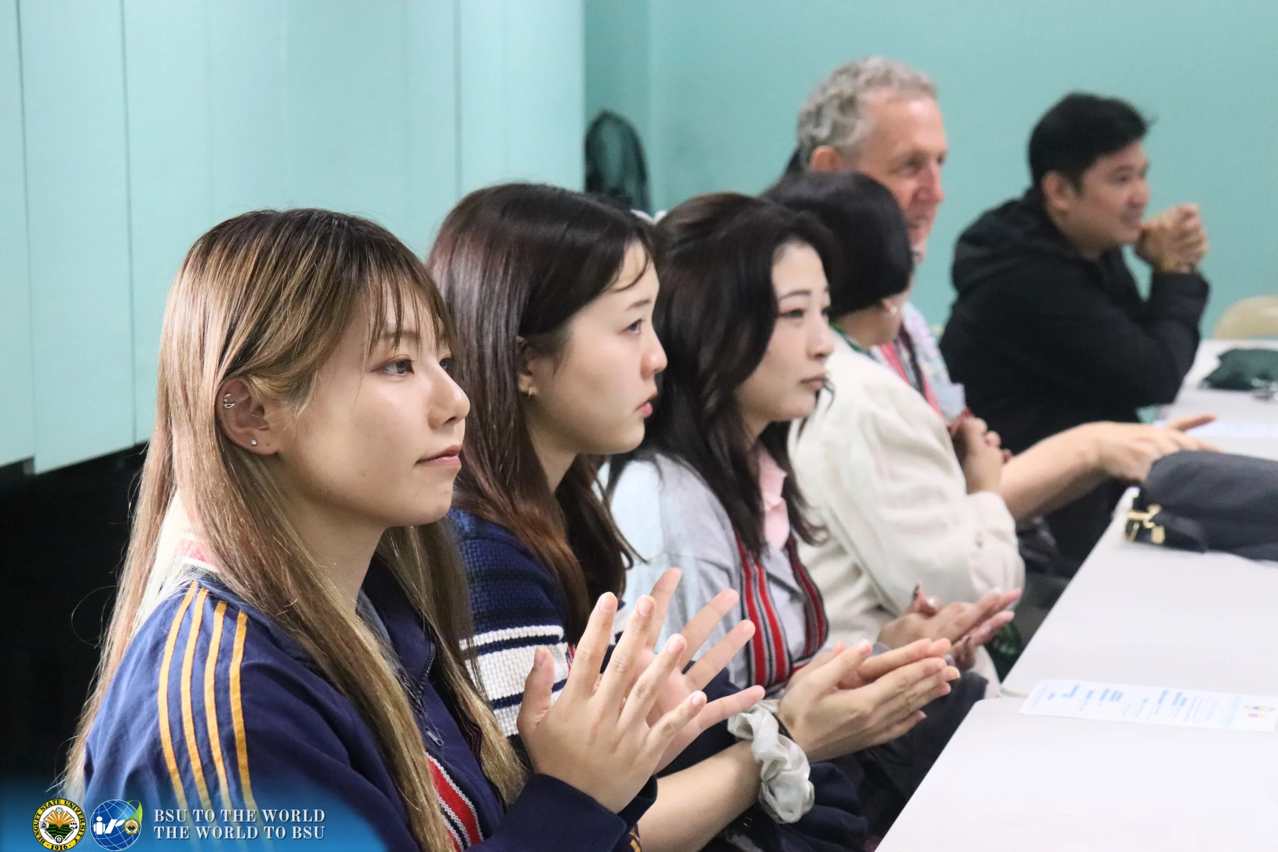 BSU President, Dr. Kenneth A. Laruan, delivered a short message warmly welcoming UCU and Konan University, reinforcing the commitment to mutual growth and partnership. Hirao School of Management Director, Dr. Brent Jones, introduced Konan University’s background and his students, Yuna Sakata, Hina Arima, Yukino Yamada, along with Mr. Gabriel Chong, U.S Peace Corps Volunteer. Followed by a performance from his students, together with Mr. Soma Yauchi.