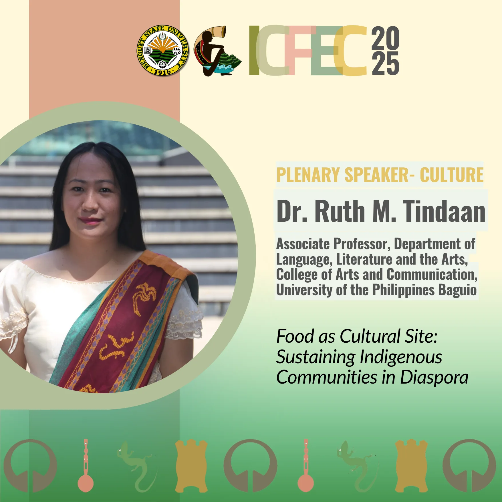 For our Culture track, we welcome Dr. Ruth M. Tindaan from UP Baguio. Her talk, “Food as Cultural Site: Sustaining Indigenous Communities in Diaspora,” will explore the profound connection between food and cultural identity. Don’t miss this! #ICFEC2025 #CulturalFood #UPBaguio