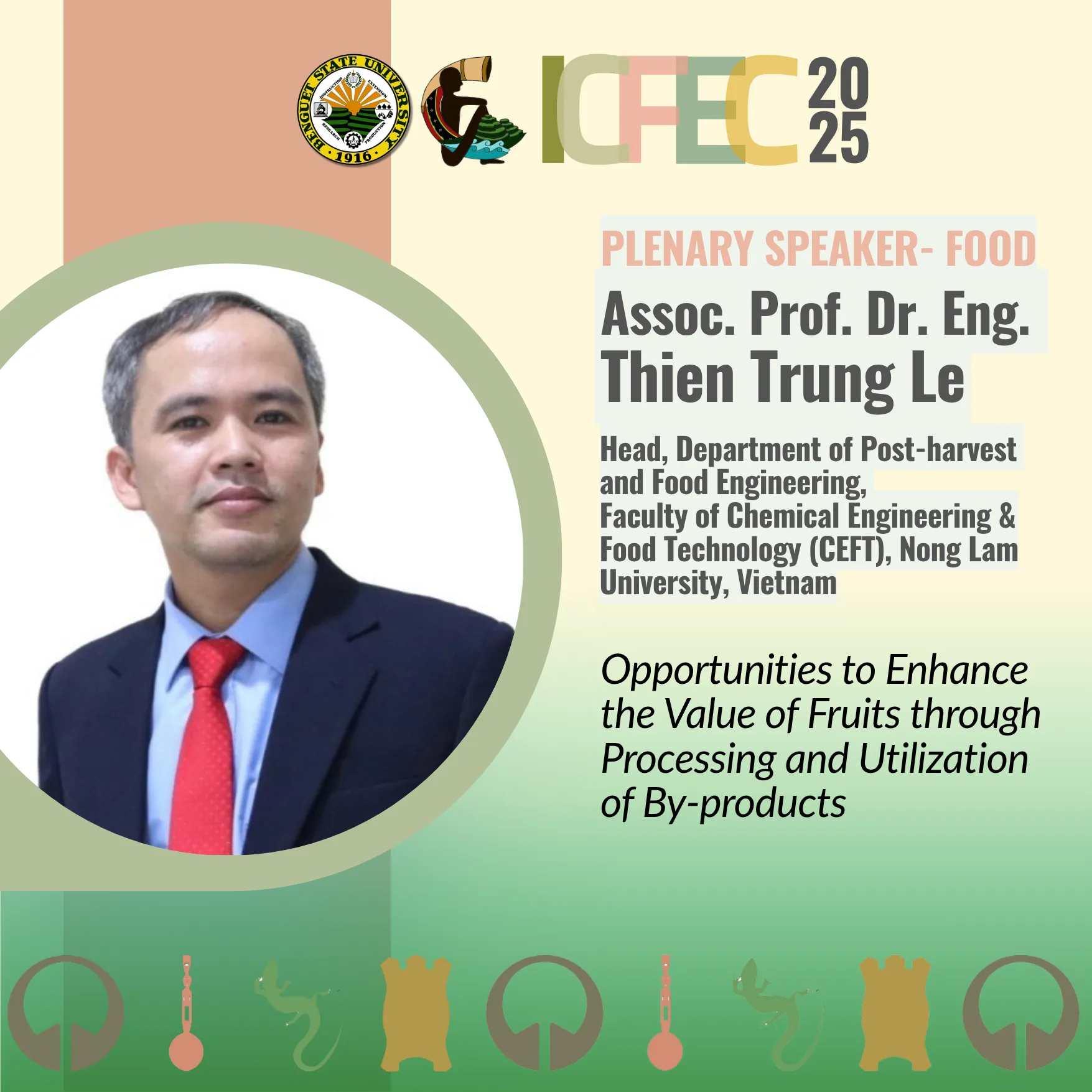 From Nong Lam University, Vietnam, we have Assoc. Prof. Dr. Eng. Thien Trung Le joining our Food Plenary! His topic, “Opportunities to Enhance the Value of Fruits through Processing and Utilization of By-products,” focuses on minimizing waste and maximizing value. Essential viewing for food innovators! #ICFEC2025 #PostHarvest