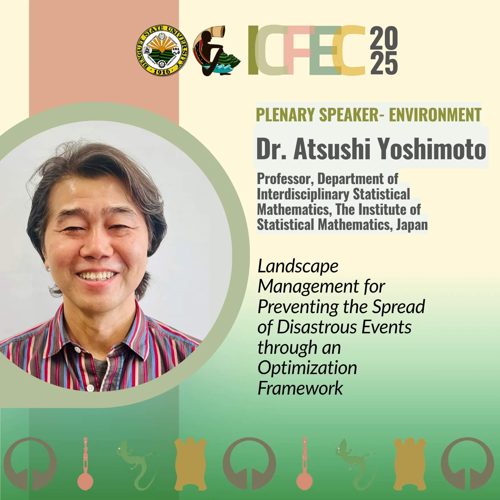 Representing our Environment track, we have Dr. Atsushi Yoshimoto from The Institute of Statistical Mathematics, Japan. He will present “Landscape Management for Preventing the Spread of Disastrous Events through an Optimization Framework.” Discover how mathematics can save our landscapes! #ICFEC2025 #Optimization #Environment