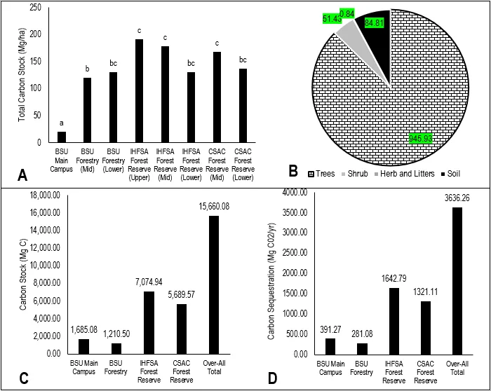 Figure 11. Assessment of carbon stock and carbon sequestration in BSU’s forest reserves