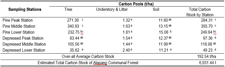 Table 4. Carbon Stock of Alapang Communal Forest, La Trinidad, Benguet