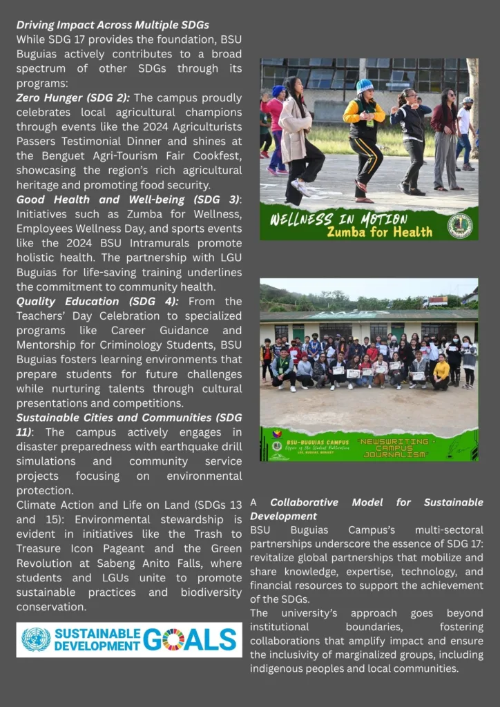 Benguet State University (BSU) strategically leveraged collaborative partnerships in 2024 as the essential mechanism for translating global sustainability goals into measurable local impact. This comprehensive effort, rooted in institutional objectives focused on proactively strengthening linkages , directly addresses the mandates of UN Sustainable Development Goal 17 (Partnerships for the Goals).